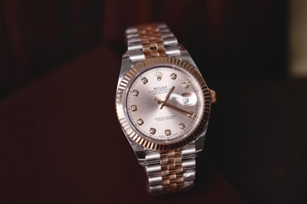 Case: | Stainless Steel (41mm) w/18k Rose Gold, Fluted Bezel |