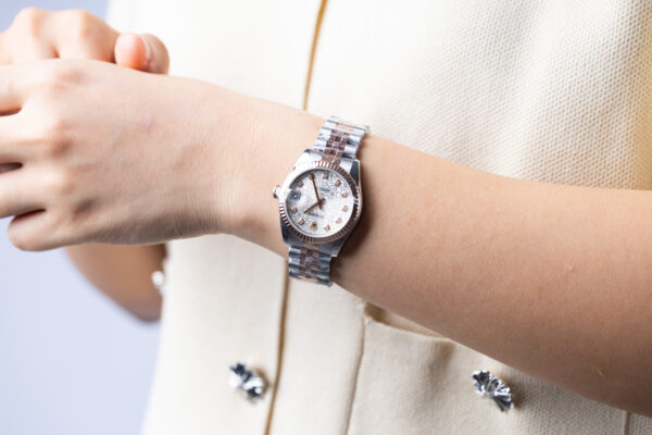 Case: | Stainless Steel(31mm),w/18k Rose Gold, Fluted Bezel |